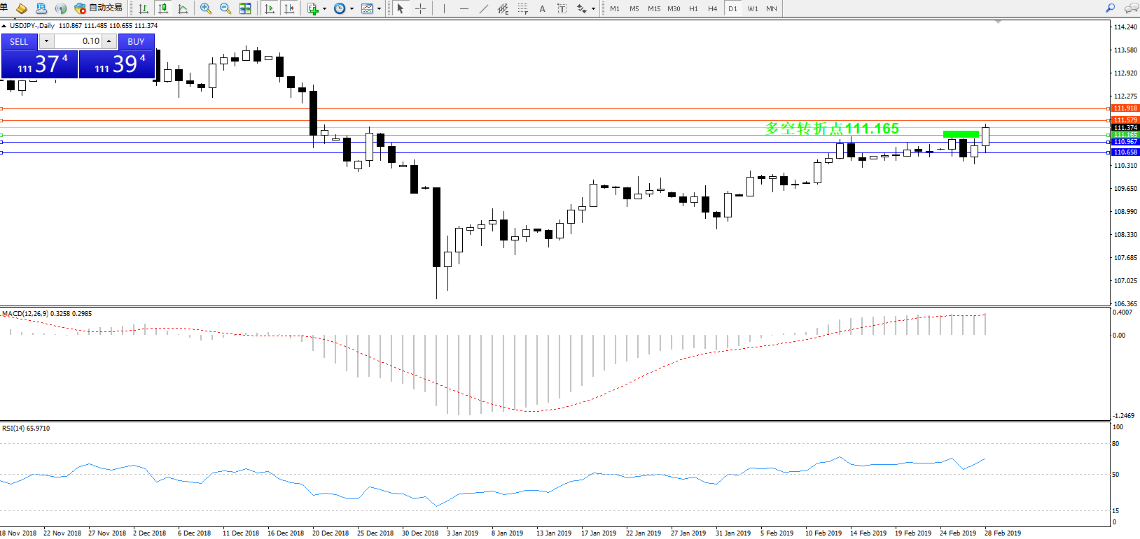 交易策略:111.165上方看涨,目标111.579、111.918