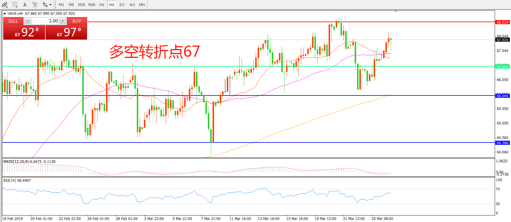 多空转折点:67.00