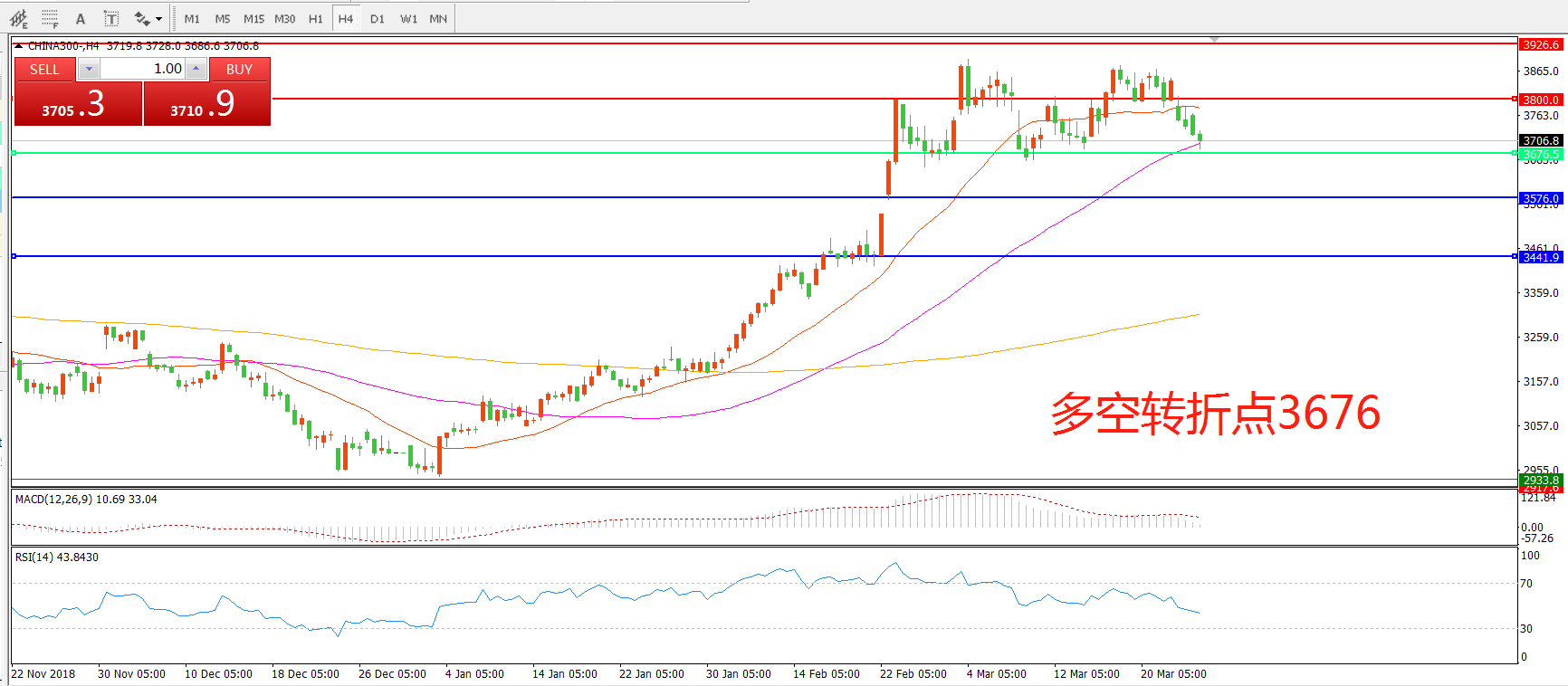 多空转折点:3676.00