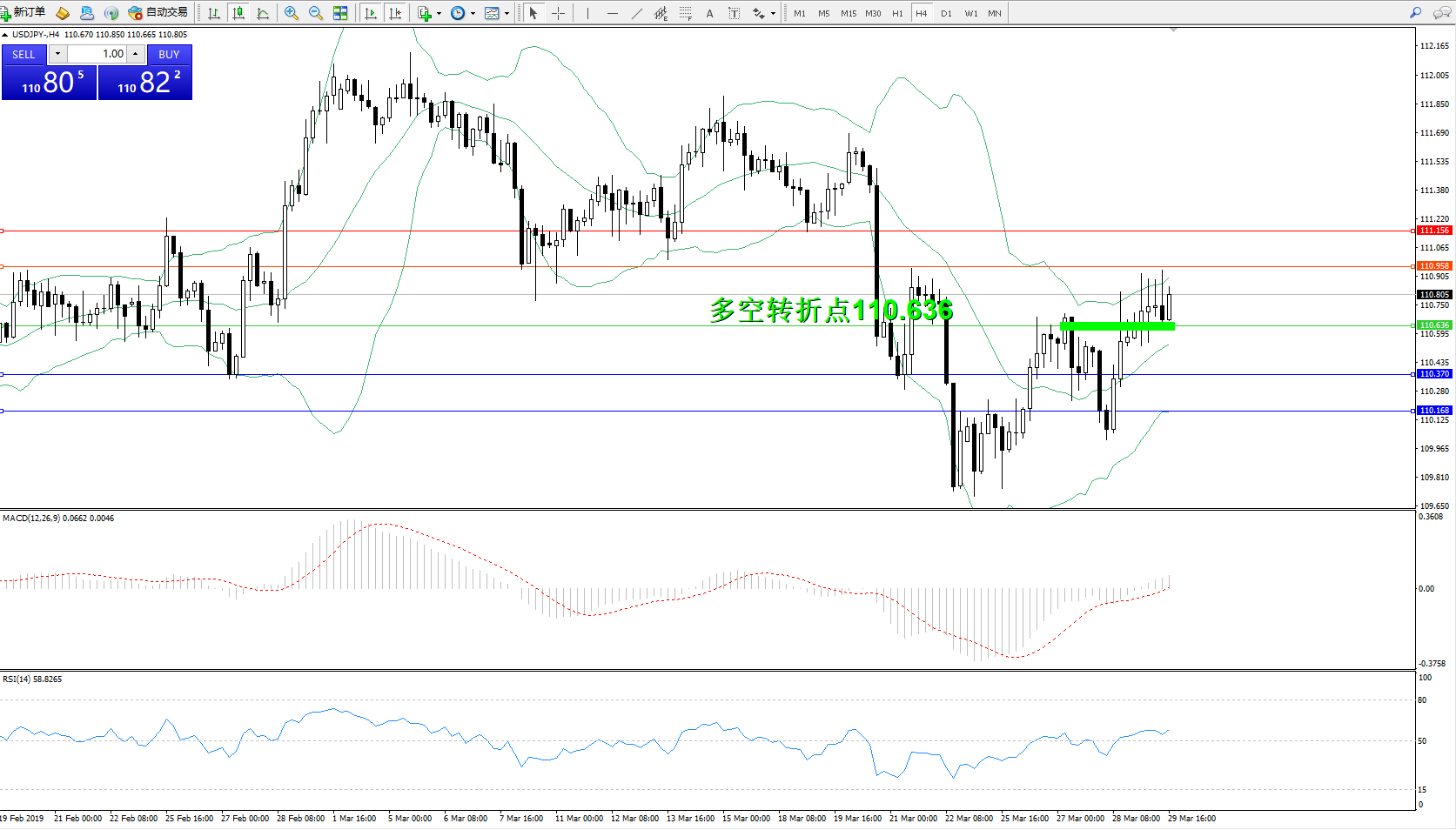 交易策略:110.636上方看涨,目标110.958、111.156