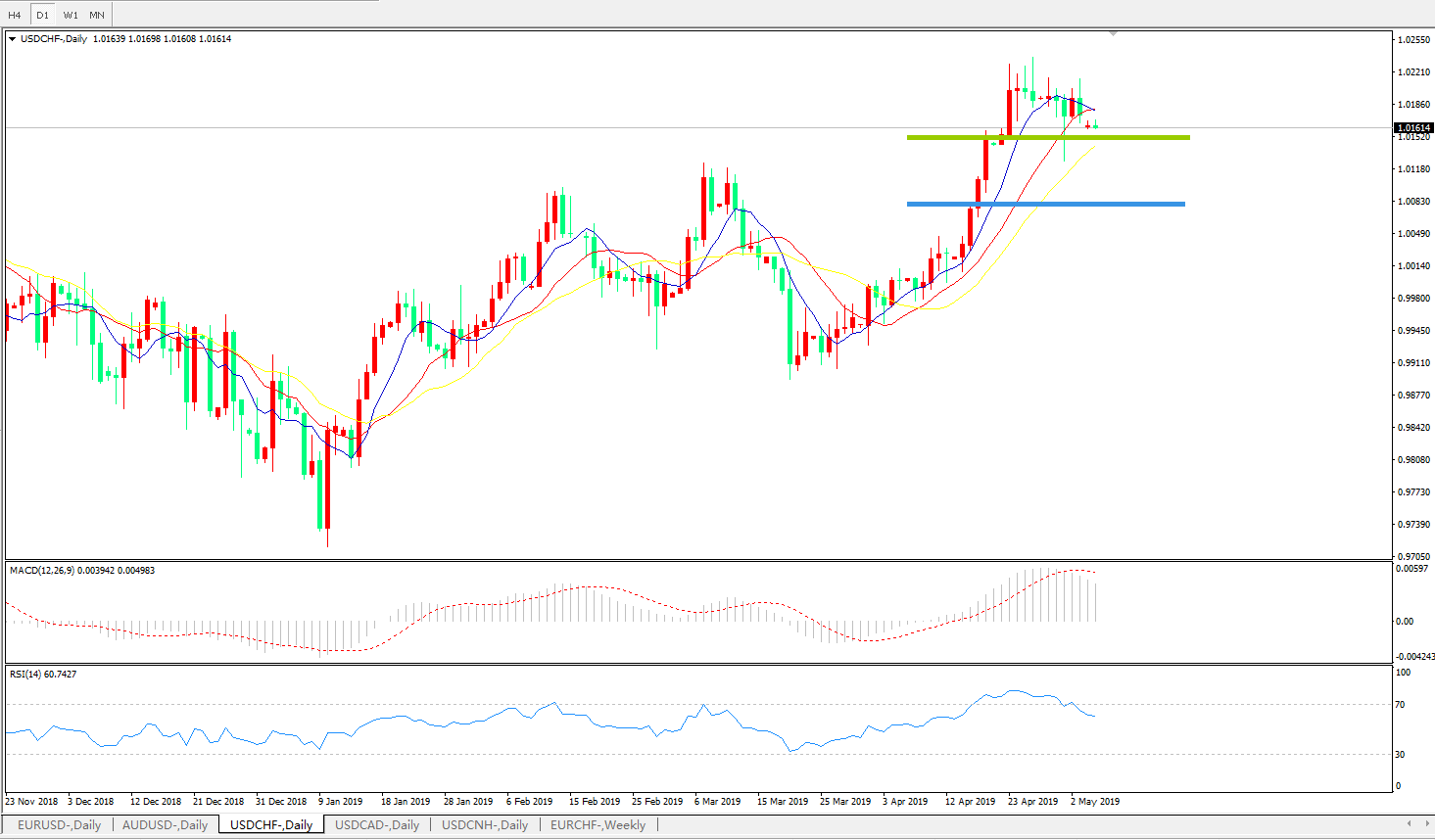 美元兑瑞郎USDCHF 日线图: