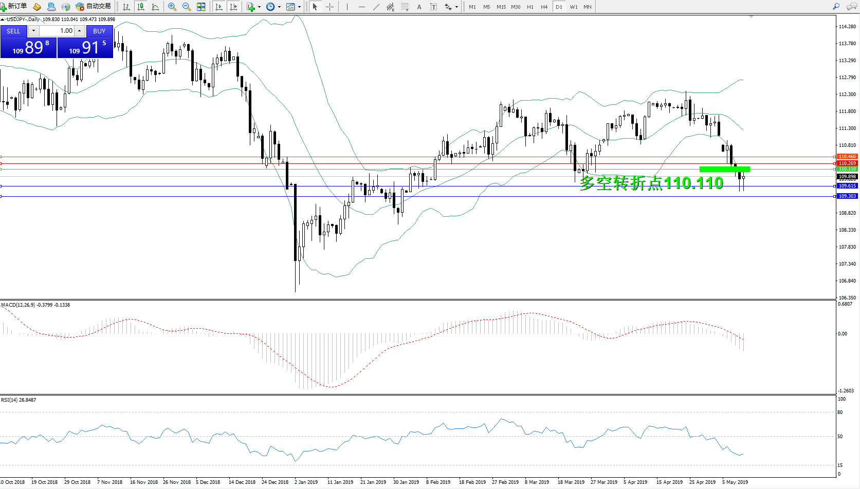 交易策略:110.110下方看跌,目标109.615109.303
