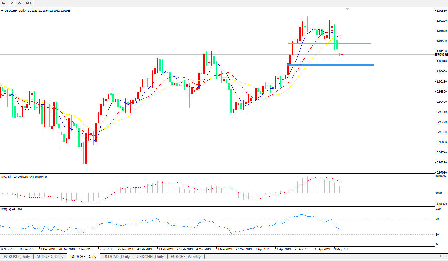 美元兑瑞郎USDCHF 日线图: