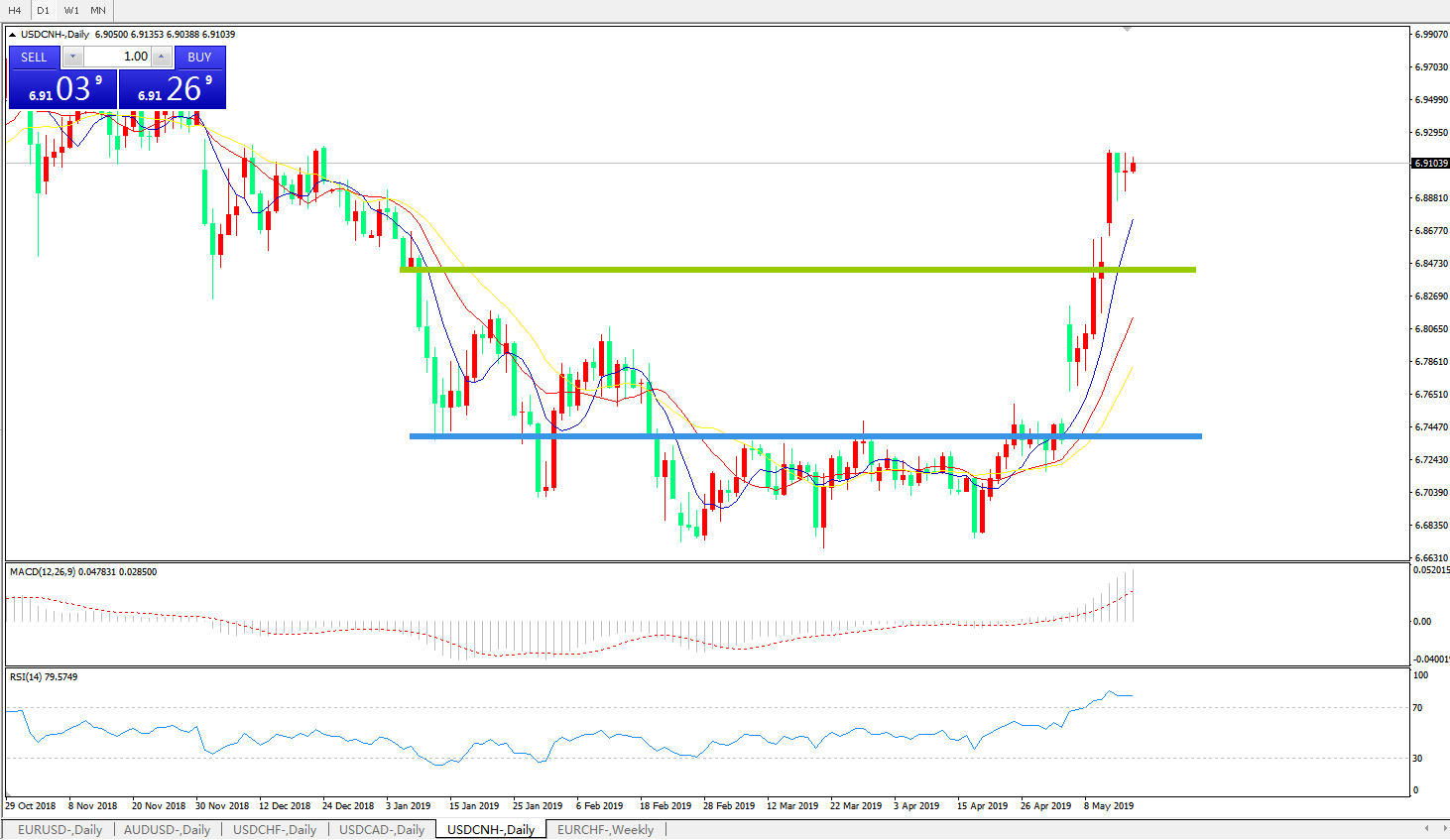 交易策略: 在6.8450之上,看涨,目标价位为6.9200,然后为6.9400。