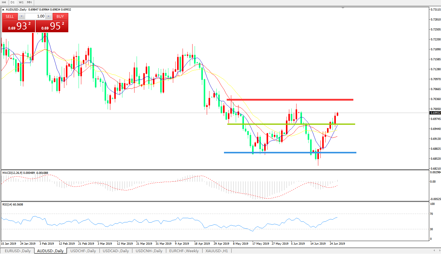 交易策略:0.6960上方看涨,目标0.70200.7100