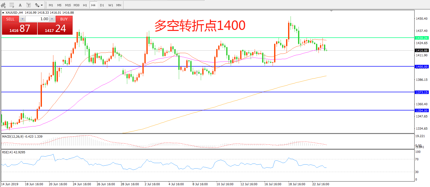 多空转折点:1430.00