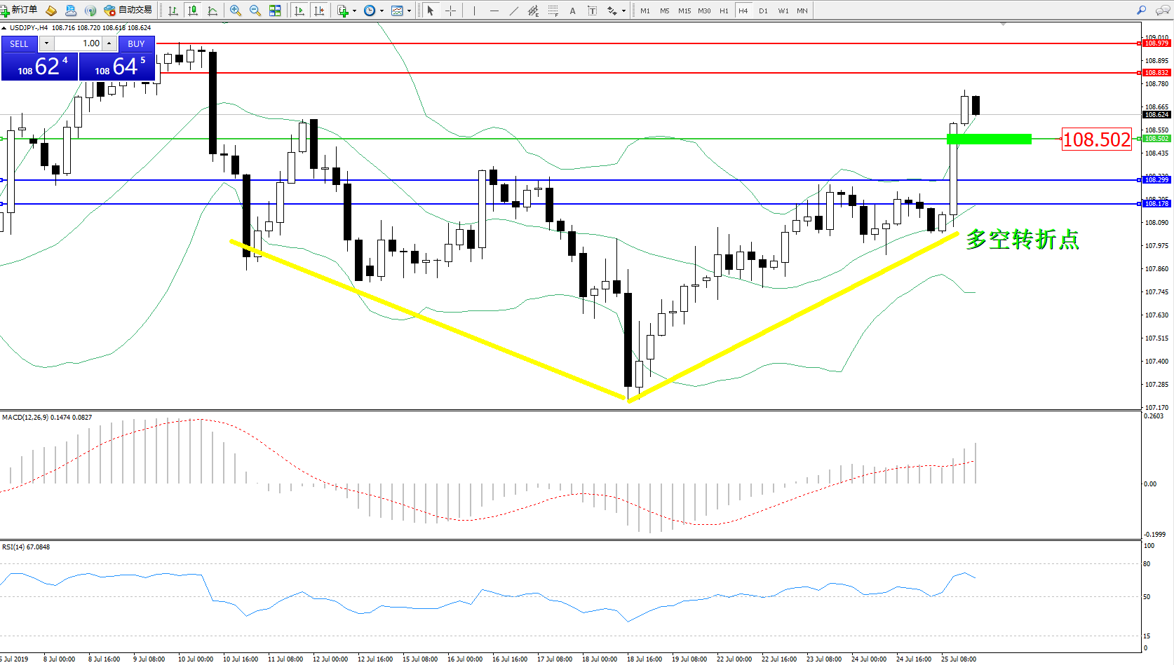 交易策略:108.502上方看涨,目标108.832108.979