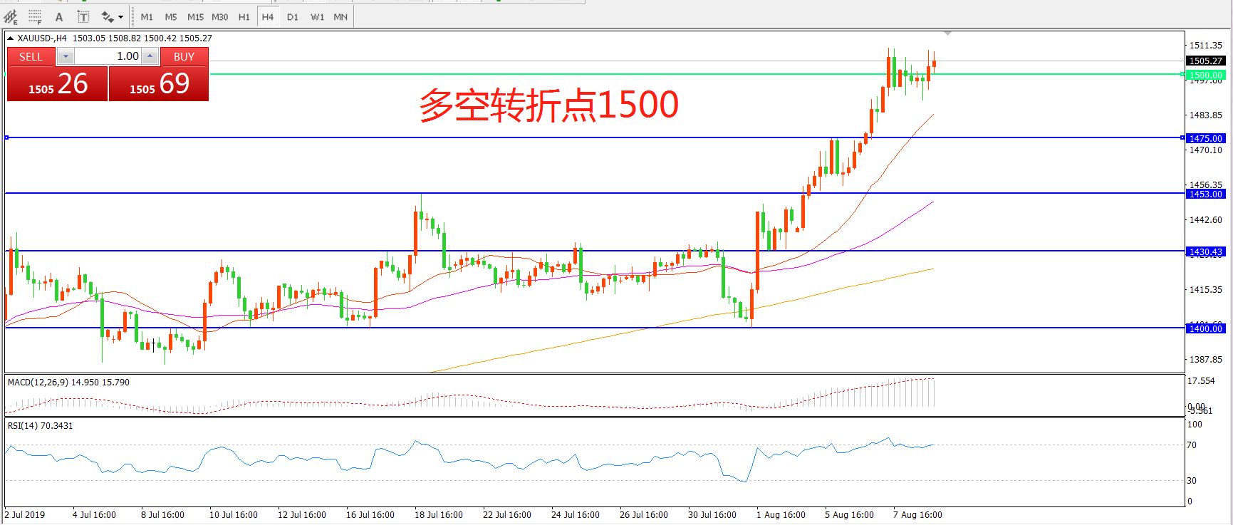 多空转折点:1500.00