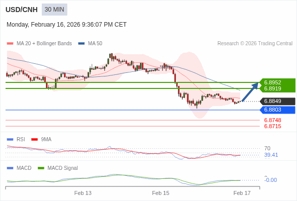 替代方案: 在6.8803以下,期待6.8748和6.8715。