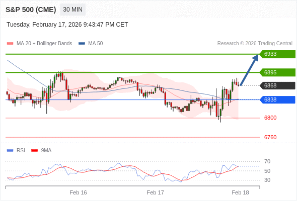 在 6838 之上,看涨,目标价位为 6895 ,然后为 6933 。