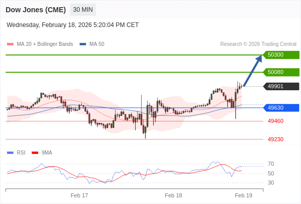 在 49630 之上,看涨,目标价位为 50080 ,然后为 50300 。