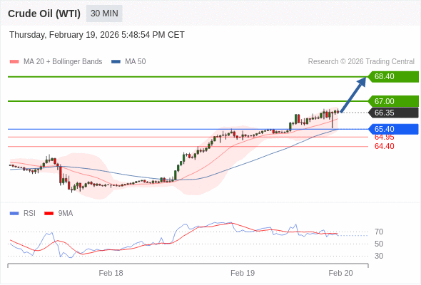 在 65.40 之上,看涨,目标价位为 67.00 ,然后为 68.40 。