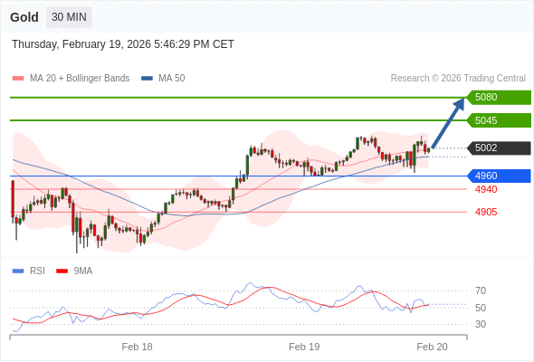 在 4960 之上,看涨,目标价位为 5045 ,然后为 5080 。