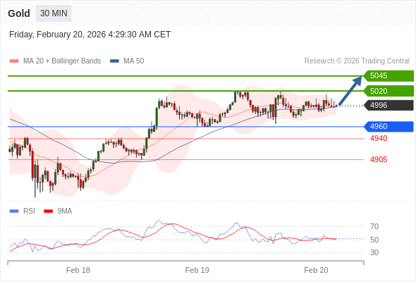 在 4960 之上,看涨,目标价位为 5020 ,然后为 5045 。