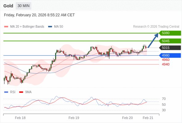 在 4980 之上,看涨,目标价位为 5045 ,然后为 5080 。