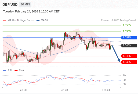 在 1.3515 之下,看跌,目标价位为 1.3455 ,然后为 1.3435 。