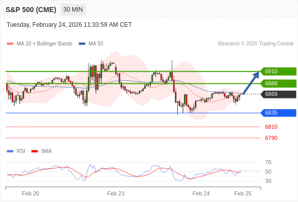 在 6835 之上,看涨,目标价位为 6888 ,然后为 6910 。