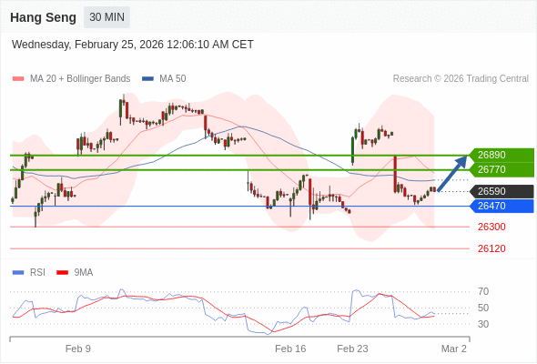 在 26470 之上,看涨,目标价位为 26770 ,然后为 26890 。