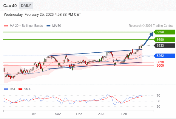 在 8262 之上,看涨,目标价位为 8690 ,然后为 8890 。
