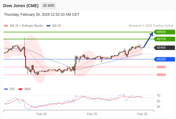 在 49200 之上,看涨,目标价位为 49720 ,然后为 49900 。