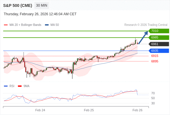 在 6935 之上,看涨,目标价位为 6985 ,然后为 7010 。