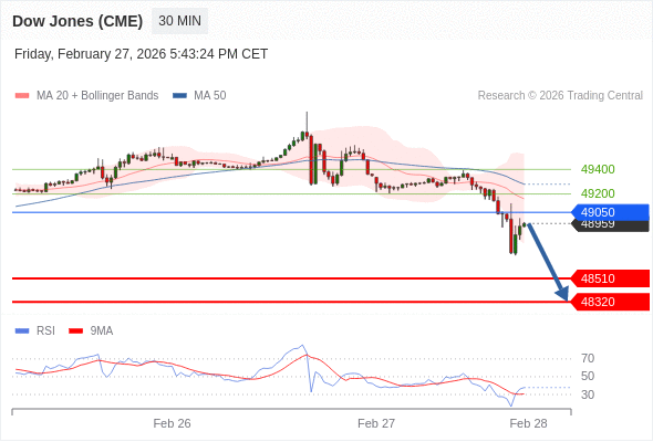 在 49050 之下,看跌,目标价位为 48510 ,然后为 48320 。