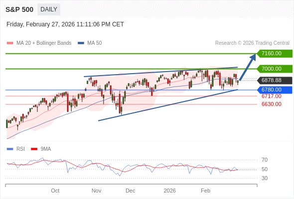 S&P 500 短线: 在6780.00之上,看涨。