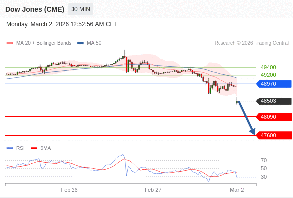在 48970 之下,看跌,目标价位为 48090 ,然后为 47600 。