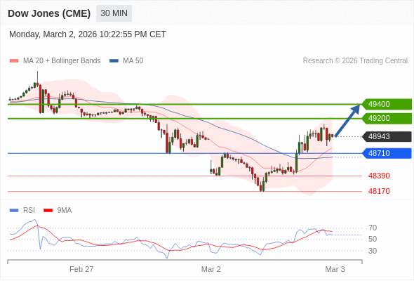 在 48710 之上,看涨,目标价位为 49200 ,然后为 49400 。