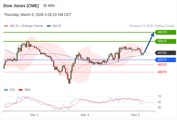 在 48470 之上,看涨,目标价位为 49075 ,然后为 49370 。