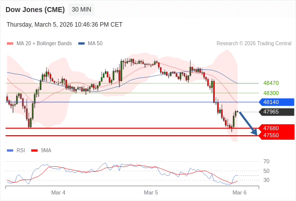 在 48140 之下,看跌,目标价位为 47680 ,然后为 47550 。