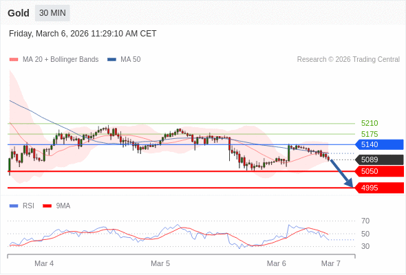 在 5140 之下,看跌,目标价位为 5050 ,然后为 4995 。