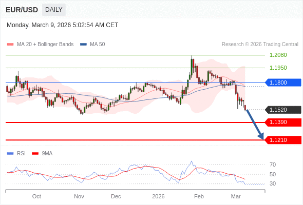 在 1.1800 之下,看跌,目标价位为 1.1390 ,然后为 1.1210 。