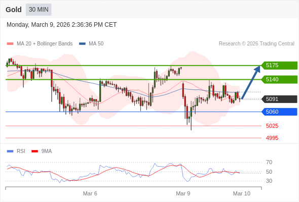 在 5060 之上,看涨,目标价位为 5140 ,然后为 5175 。