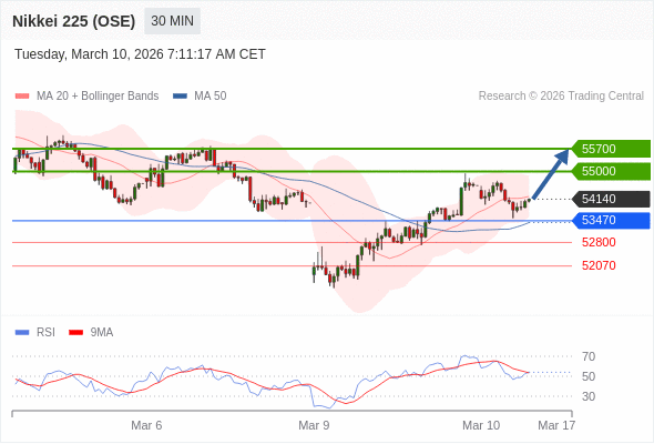在 53470 之上,看涨,目标价位为 55000 ,然后为 55700 。
