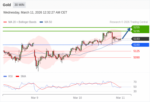在 5160 之上,看涨,目标价位为 5235 ,然后为 5255 。