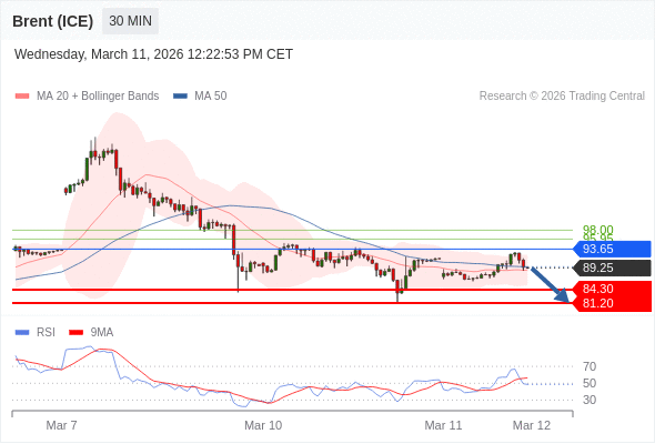 交易策略: 在 93.65 之下,看跌,目标价位为 84.30 ,然后为 81.20 。