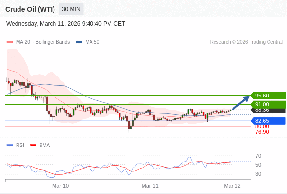 在 82.65 之上,看涨,目标价位为 91.00 ,然后为 95.60 。