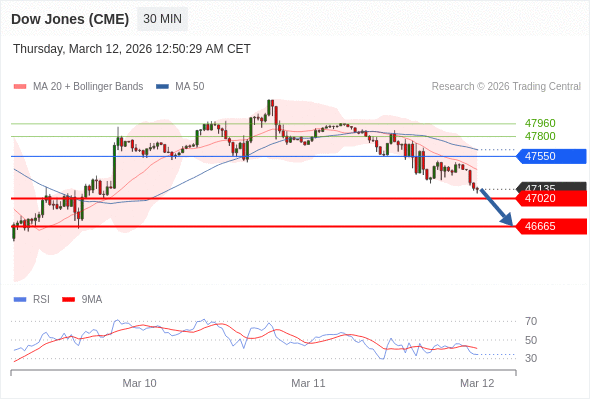 在 47550 之下,看跌,目标价位为 47020 ,然后为 46665 。