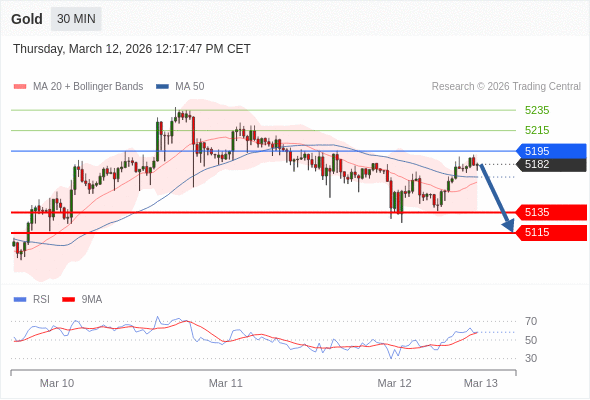 在 5195 之下,看跌,目标价位为 5135 ,然后为 5115 。