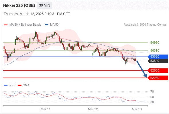 在 53850 之下,看跌,目标价位为 52800 ,然后为 52250 。