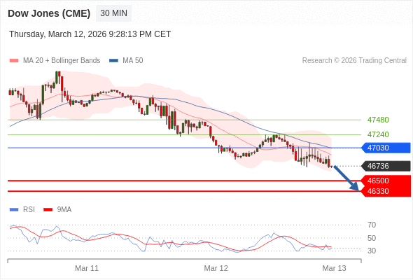 在 47030 之下,看跌,目标价位为 46500 ,然后为 46330 。