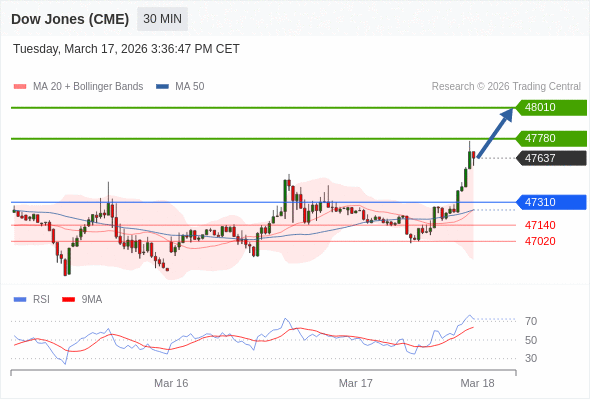 在 47310 之上,看涨,目标价位为 47780 ,然后为 48010 。