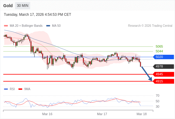 在 5020 之下,看跌,目标价位为 4945 ,然后为 4915 。