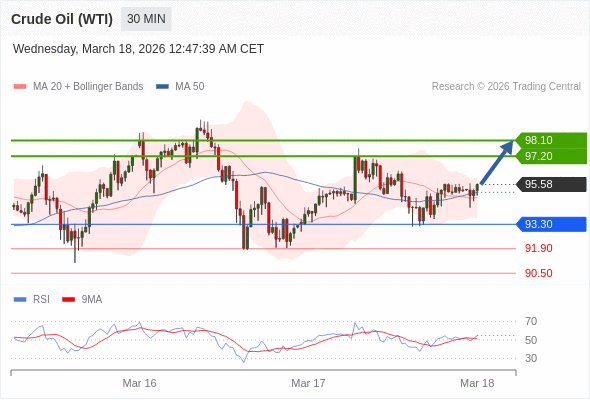 在 93.30 之上,看涨,目标价位为 97.20 ,然后为 98.10 。