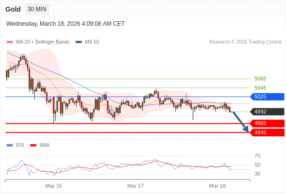黄金现货 当日内: 目标为4965。