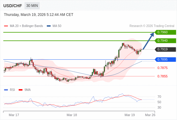 在 0.7895 之上,看涨,目标价位为 0.7940 ,然后为 0.7960 。