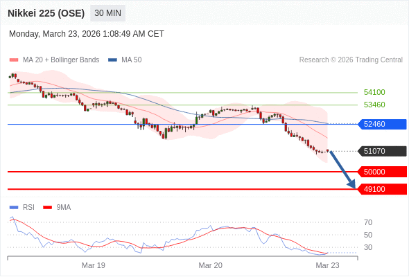 交易策略: 在 52460 之下,看跌,目标价位为 50000 ,然后为 49100 。