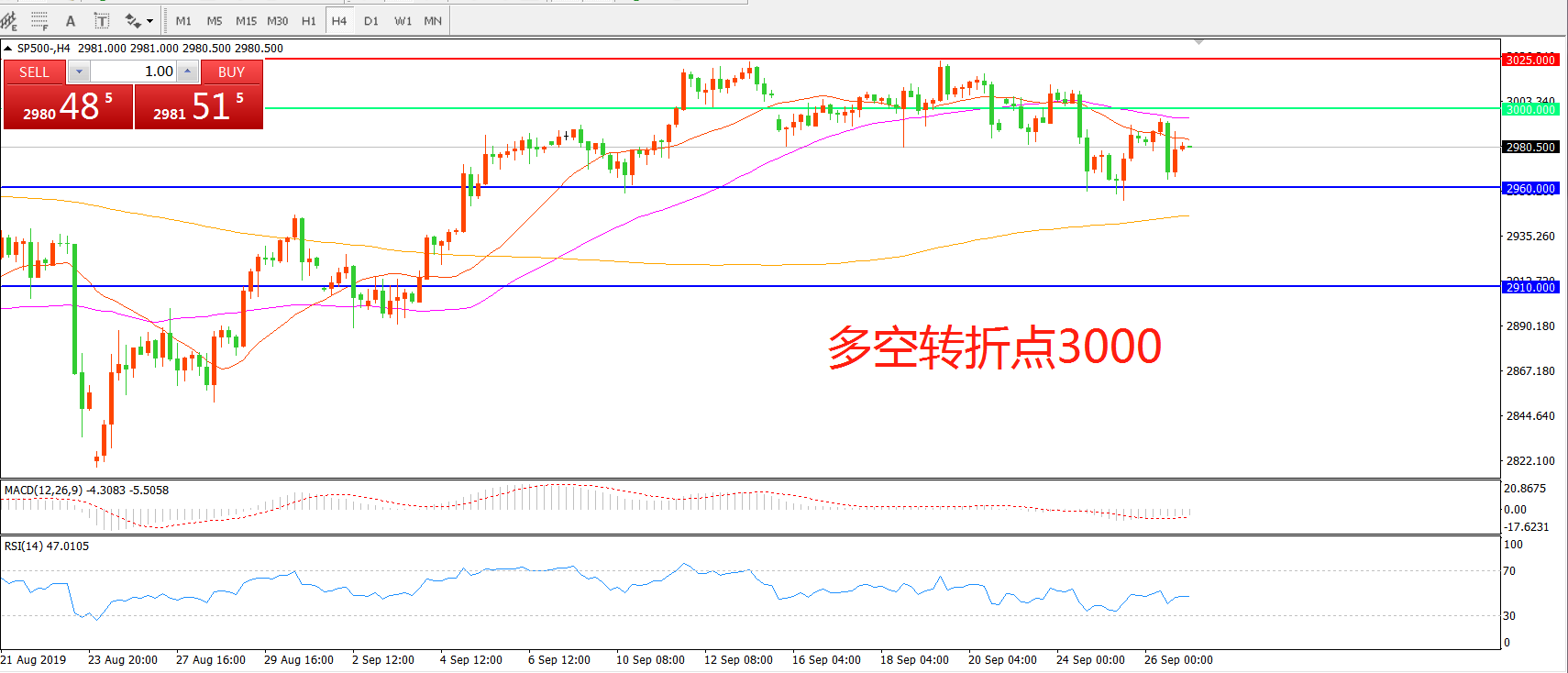 多空转折点:3000.00