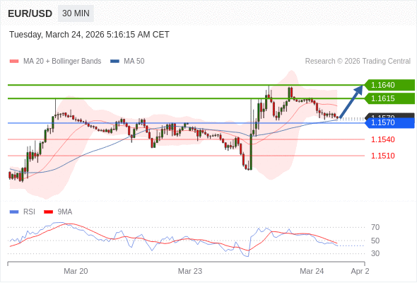 在 1.1570 之上,看涨,目标价位为 1.1615 ,然后为 1.1640 。
